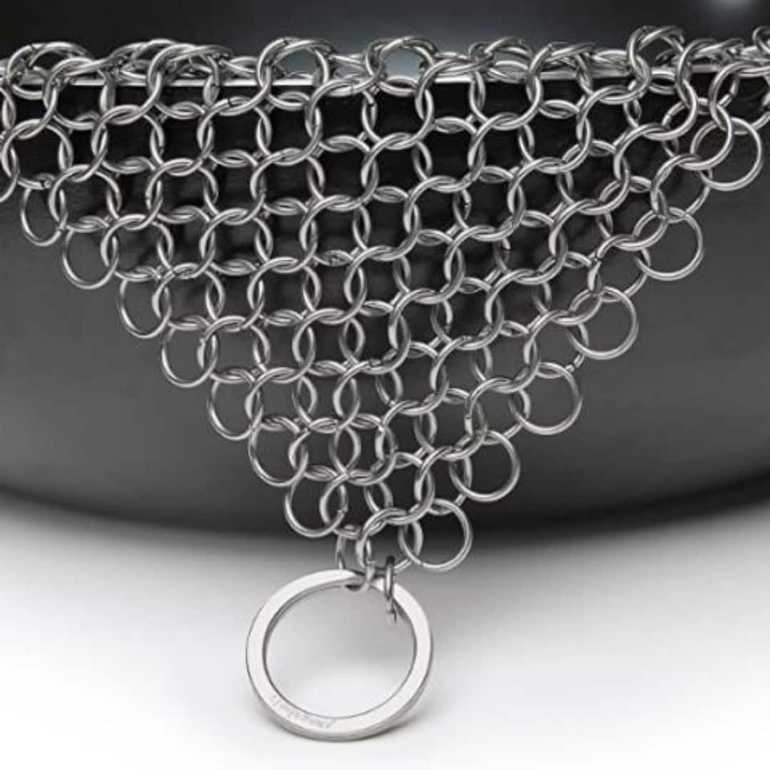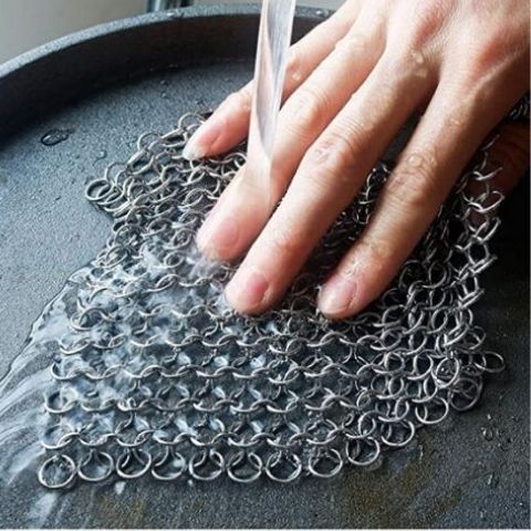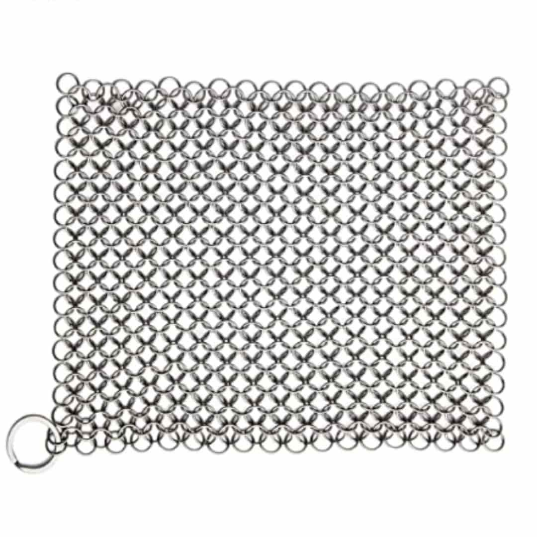 - LET ONE OF OUR CUSTOMERS DESCRIBE IT FOR YOU: "What can you say that hasn't already been said about this amazing product? I hated my cast iron skillet before, and as a result, never used it. Cleaning it was a pain. I could never seem to get it clean without soap, and as a result the seasoning would be ruined and everything would stick. HATED IT. Now that I have this mesh scrubber, I LOVE cast iron"