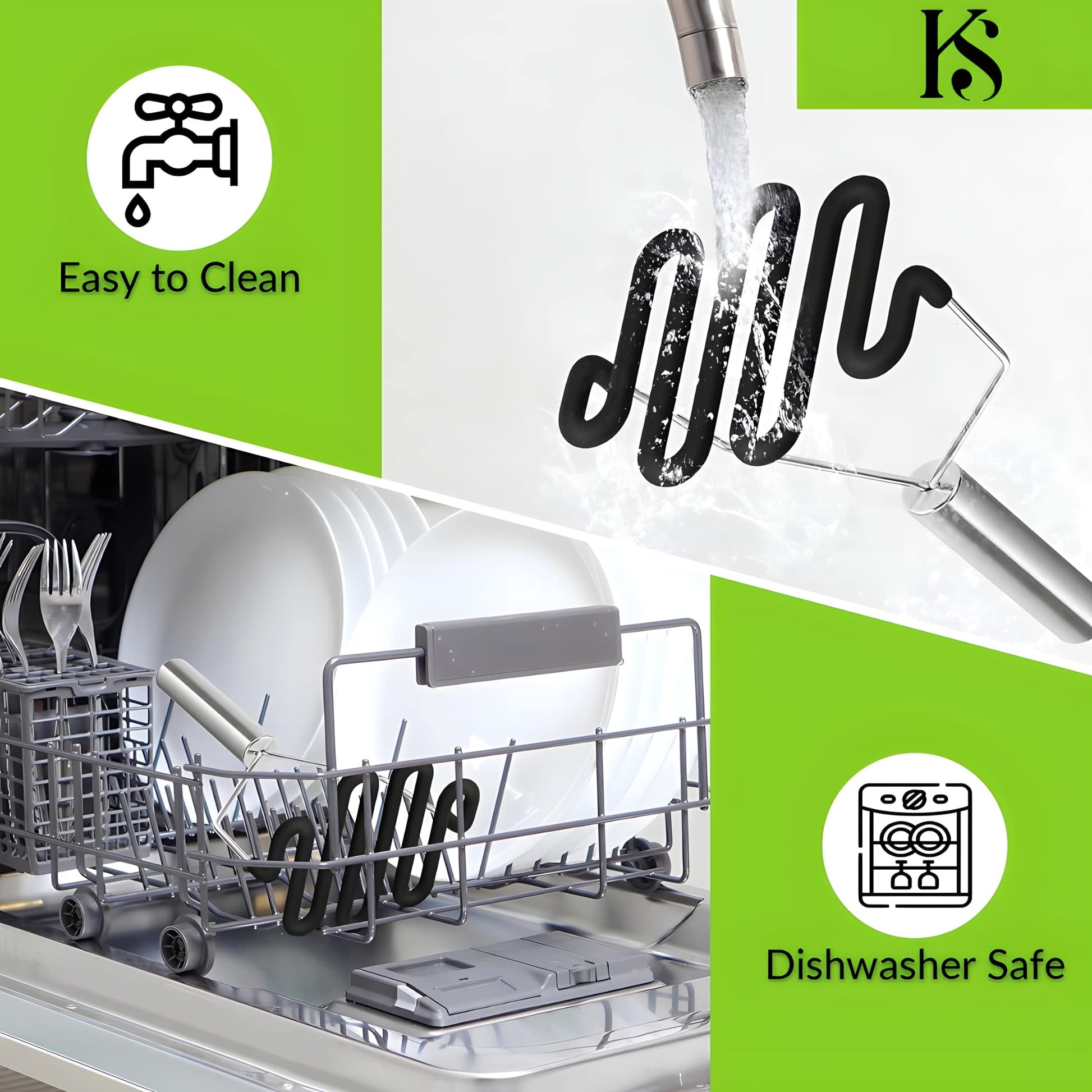 - Silicone Head To Protect Pans: No need to scratch your pans when mashing. The silicone head protects your pans and is of course bpa free,